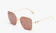 Fendi First mask with palladium-colored metal temples and pink to beige shaded lenses with micro F crystals. Adjustable nose pads.